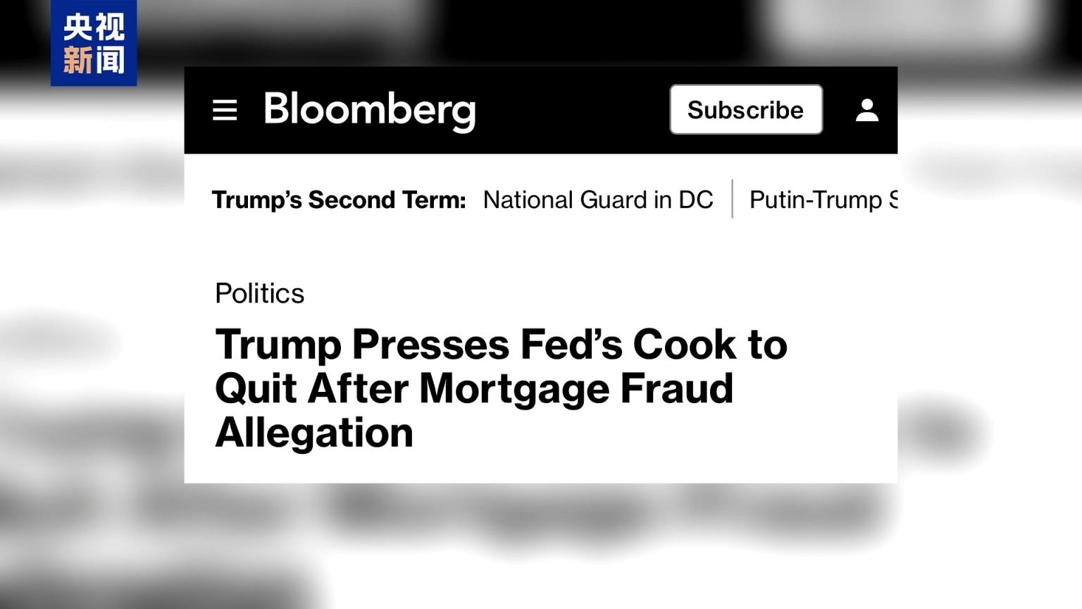 特朗普还分享了美国媒体的一篇报道,内容是联邦住房金融署署长普尔特致信美国司法部长,呼吁对库克的两笔房产抵押贷款进行更严格审查。